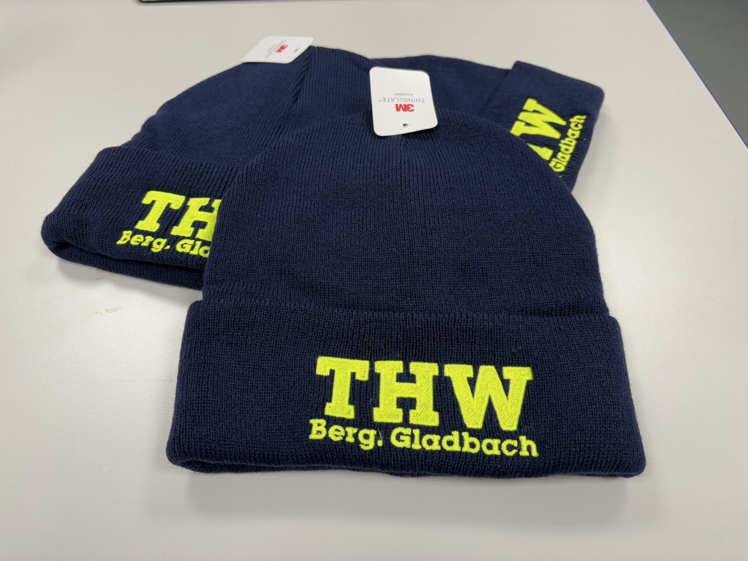 Auch die Bundesanstalt THW ist von Sparmaßnahmen betroffen. So bleiben Teils wichtige Bekleidungszusätze auf der Strecke. Mit unserer zusätzlichen Dienstbekleidung helfen wir den aktiven Helfer:innen im THW bestens ausgestattet zu sein. In diesem Beispiel Wintermützen, welche wir 2024 an die Helfer:innen ausgegeben haben.
