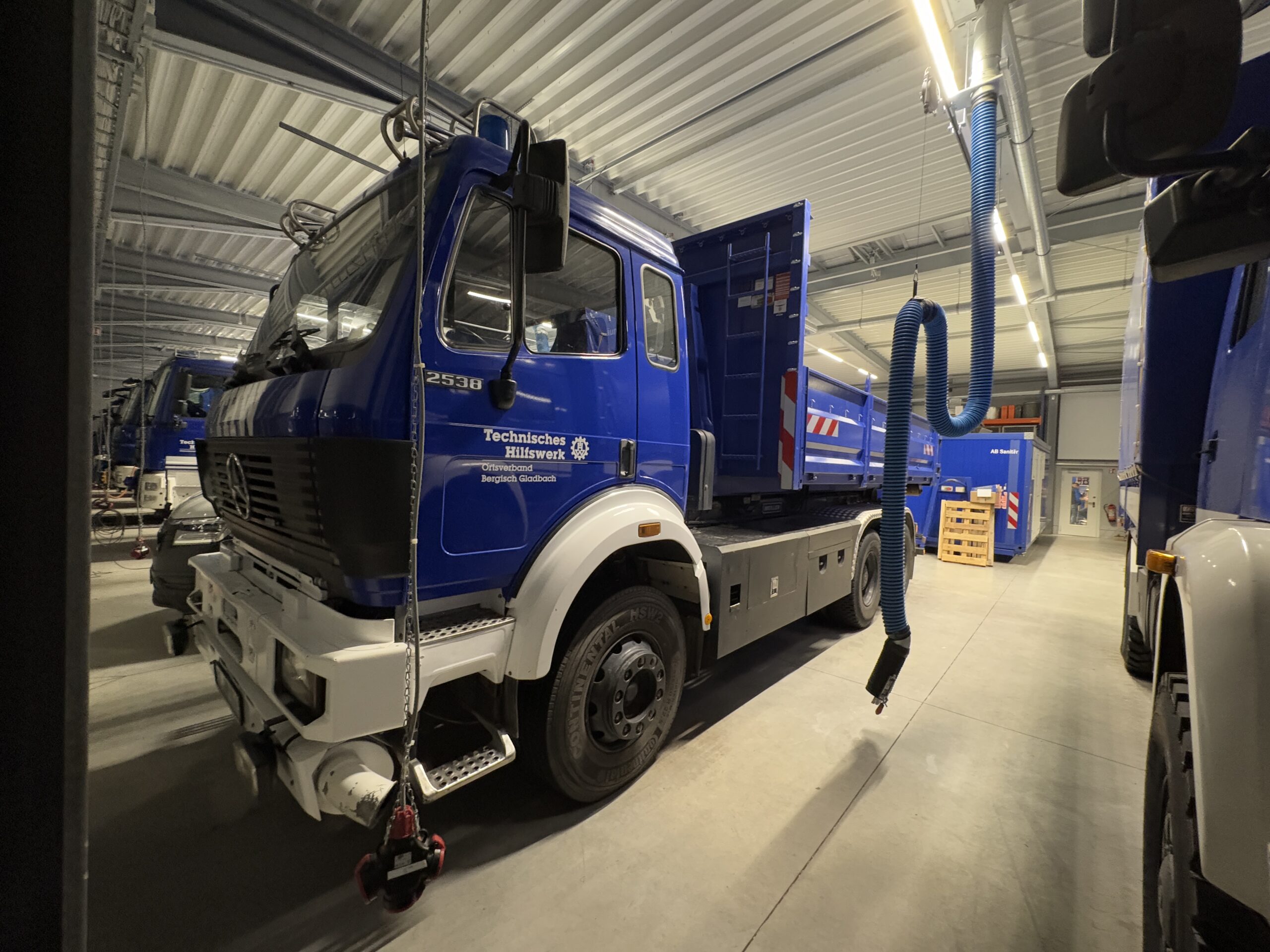 Der logistische Aufwand im Kathastrophenfall ist enorm. Grundsätzlich ist das THW gut aufgestellt aber für manche Einsatzzwecke bedarf es auch hier manchmal Unterstützung. So stellen wir teilweise Fahrzeuge, wie unseren Wechsellader, als vielseitige Unterstützung zur Verfügung. Im Einsatzfall wird dieses Fahrzeug zum Transport von Abrollcontainern, zum Material Transport und vielem weiteren gebraucht.